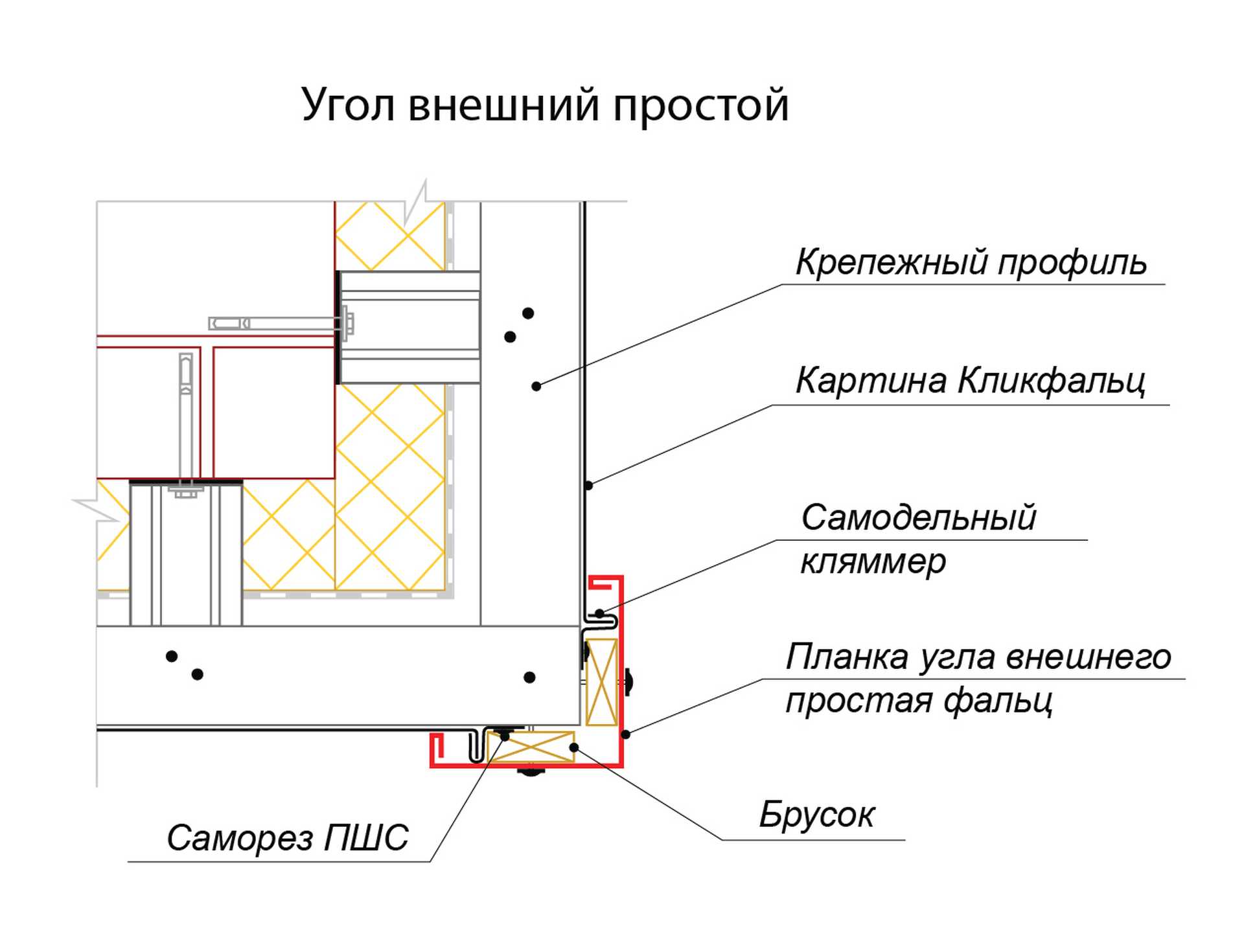 Преимущество фальцевых картин Кликфальц - это скрытый способ крепления. Это повышает надёжность и долговечность металлической кровли, так как в ней отсутствуют на рабочей поверхности сквозные отверстия, неизбежные при креплении саморезами. Кликфальц является очень прочным. Две картины скрепляют друг с другом без применения специального инструмента, с помощью клик-замка. Это значительно экономит время монтажа фальцевой кровли.